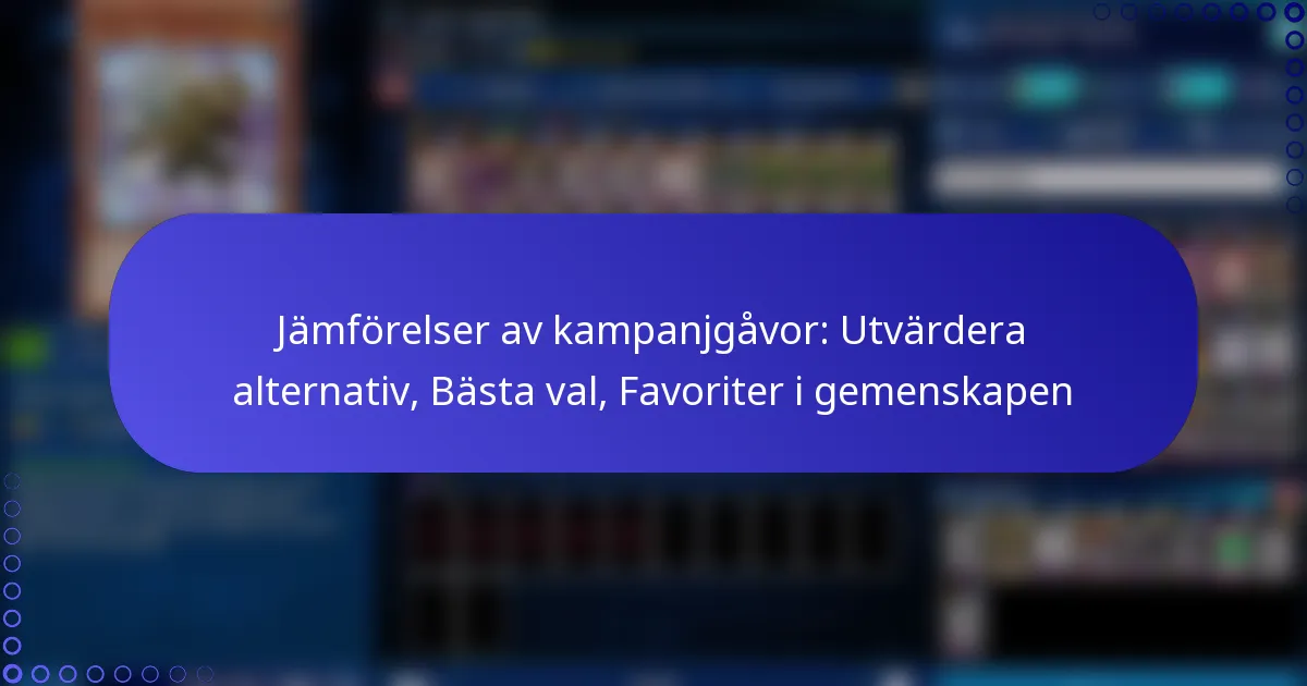 Kampanjgåvor spelar en avgörande roll i att engagera supportrar och främja en sak, där deras framgång i stor utsträckning beror på deras relevans och känslomässiga koppling till kampanjens budskap. För att välja de bästa gåvorna är det viktigt att utvärdera användarbetyg, popularitet och demografiska preferenser, vilket säkerställer att de valda föremålen resonerar med publiken. Genom att noggrant jämföra faktorer som pris, kvalitet och användbarhet kan du fatta informerade beslut som stämmer överens med dina kampanjmål och samhällsfavoriter.