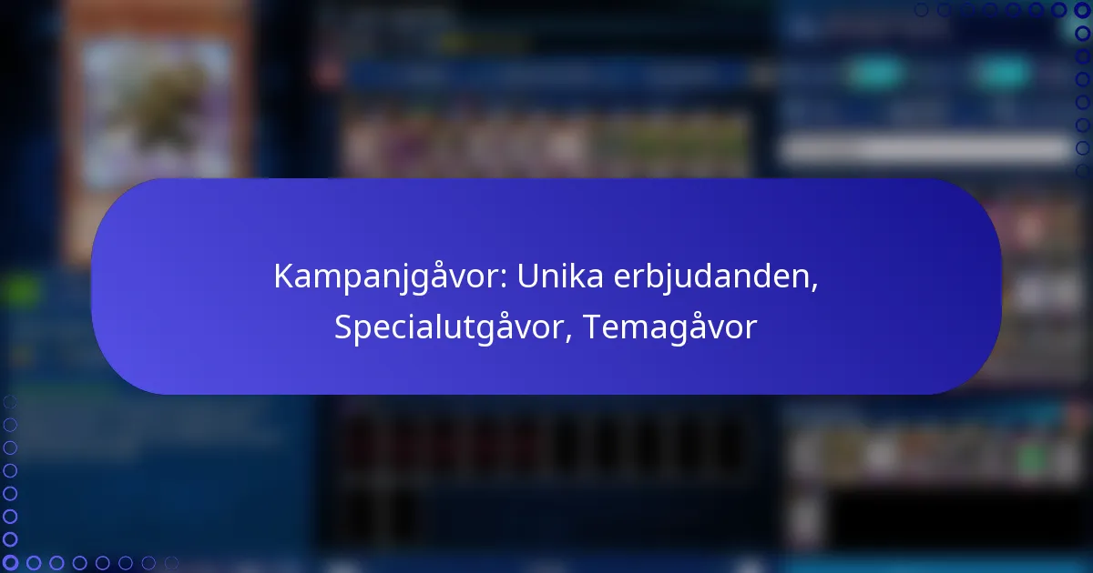Unika erbjudanden i kampanjgåvor är exklusiva föremål eller belöningar som spelare kan få under tidsbegränsade evenemang eller kampanjer. Dessa erbjudanden inkluderar ofta sällsynta kort, speciella avatarer eller unik in-game valuta som inte är tillgänglig genom vanlig spelning.