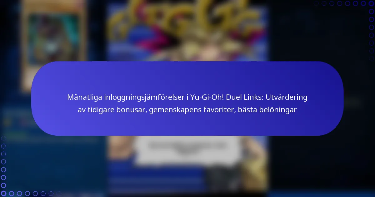 Månatliga inloggningsbonusar i Yu-Gi-Oh! Duel Links belönar spelare för deras dagliga engagemang och erbjuder en mängd olika spelobjekt som valuta och kort. Genom att utvärdera tidigare bonusar kan spelare identifiera vilka månader som gav de mest värdefulla belöningarna och hur gemenskapens preferenser har utvecklats. Att förstå dessa trender kan förbättra den övergripande spelupplevelsen och hjälpa spelare att strategisera sitt deltagande i spelet.